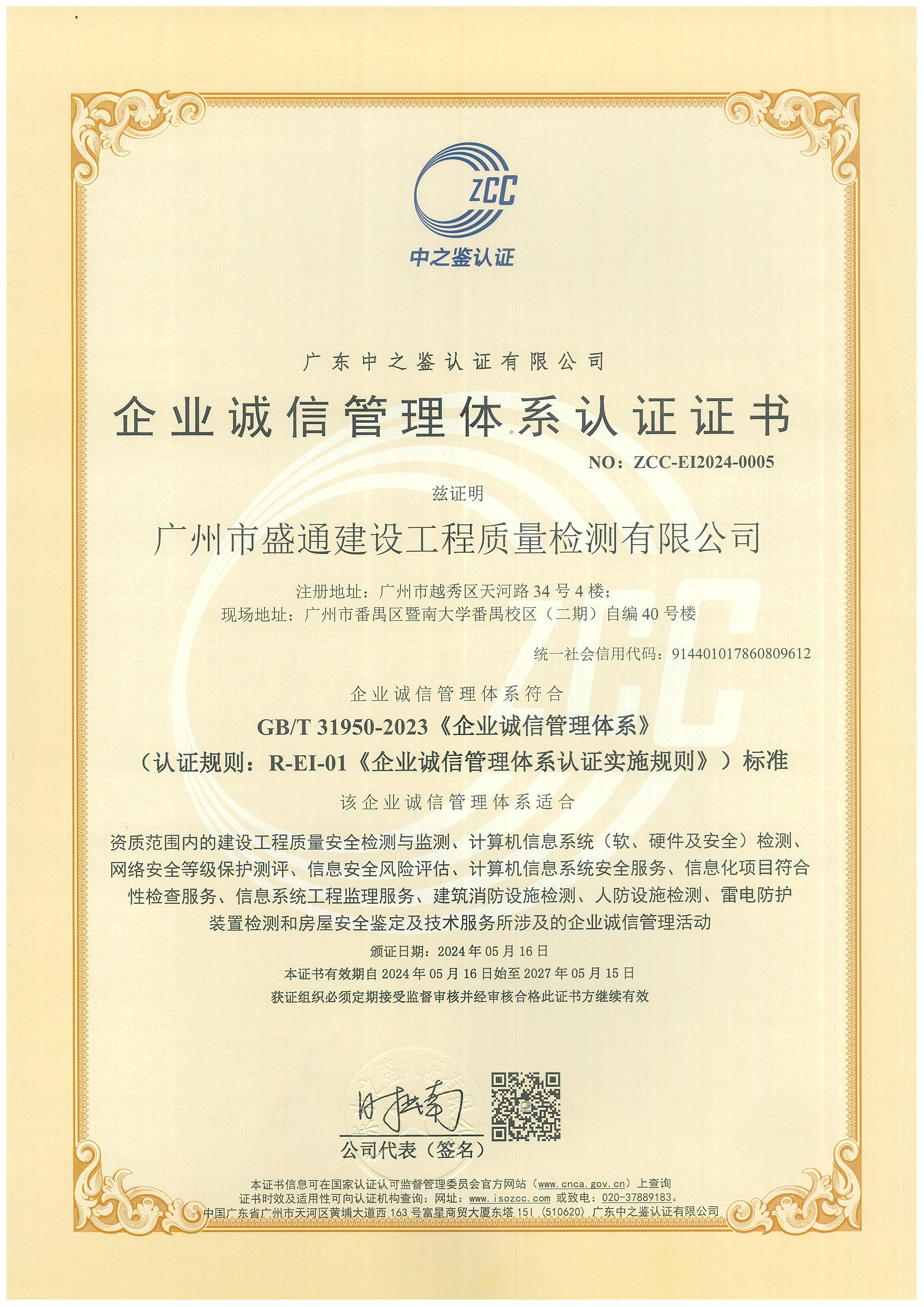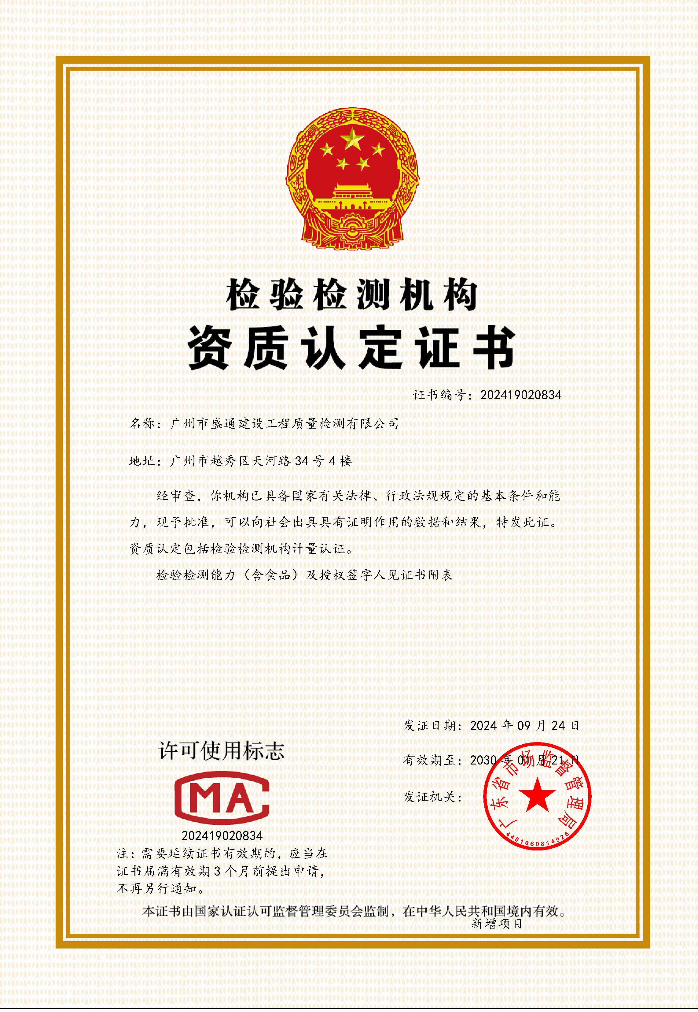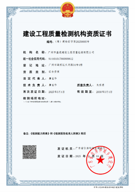 • 建設工程質量檢測機構資質證書(綜合資質)