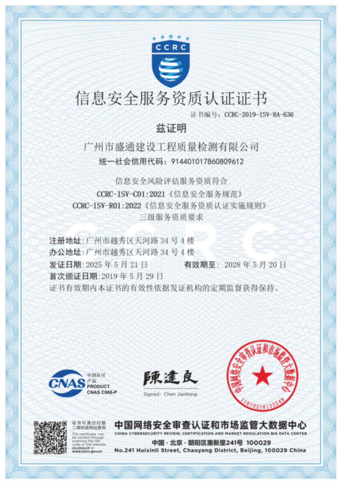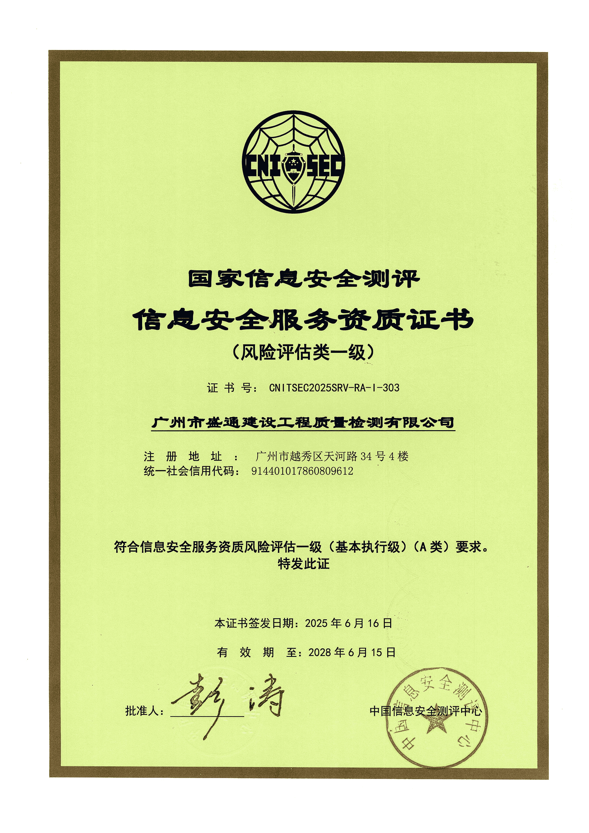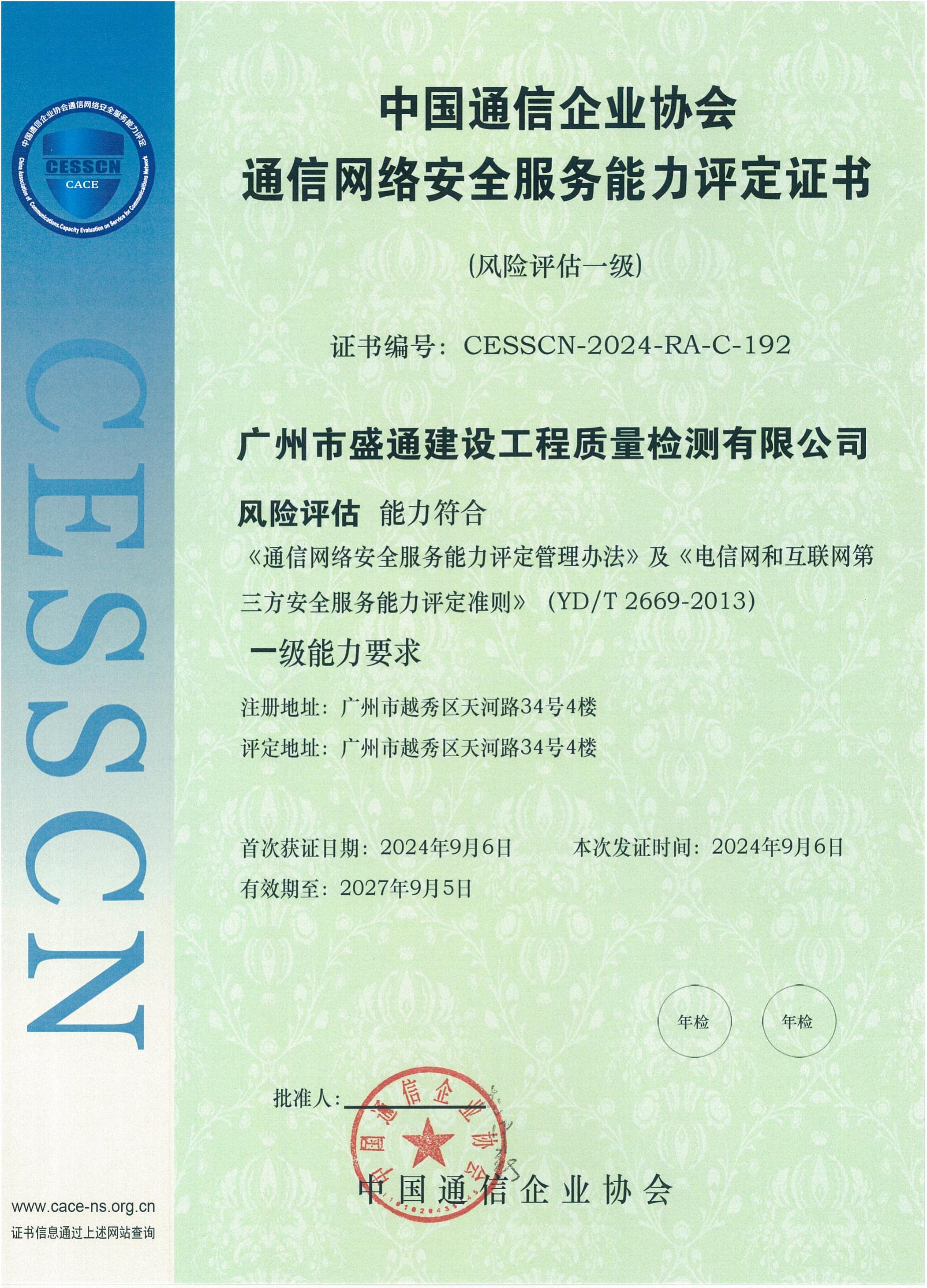 • 中國通信企業協會通信網絡安全服務能力評定證書