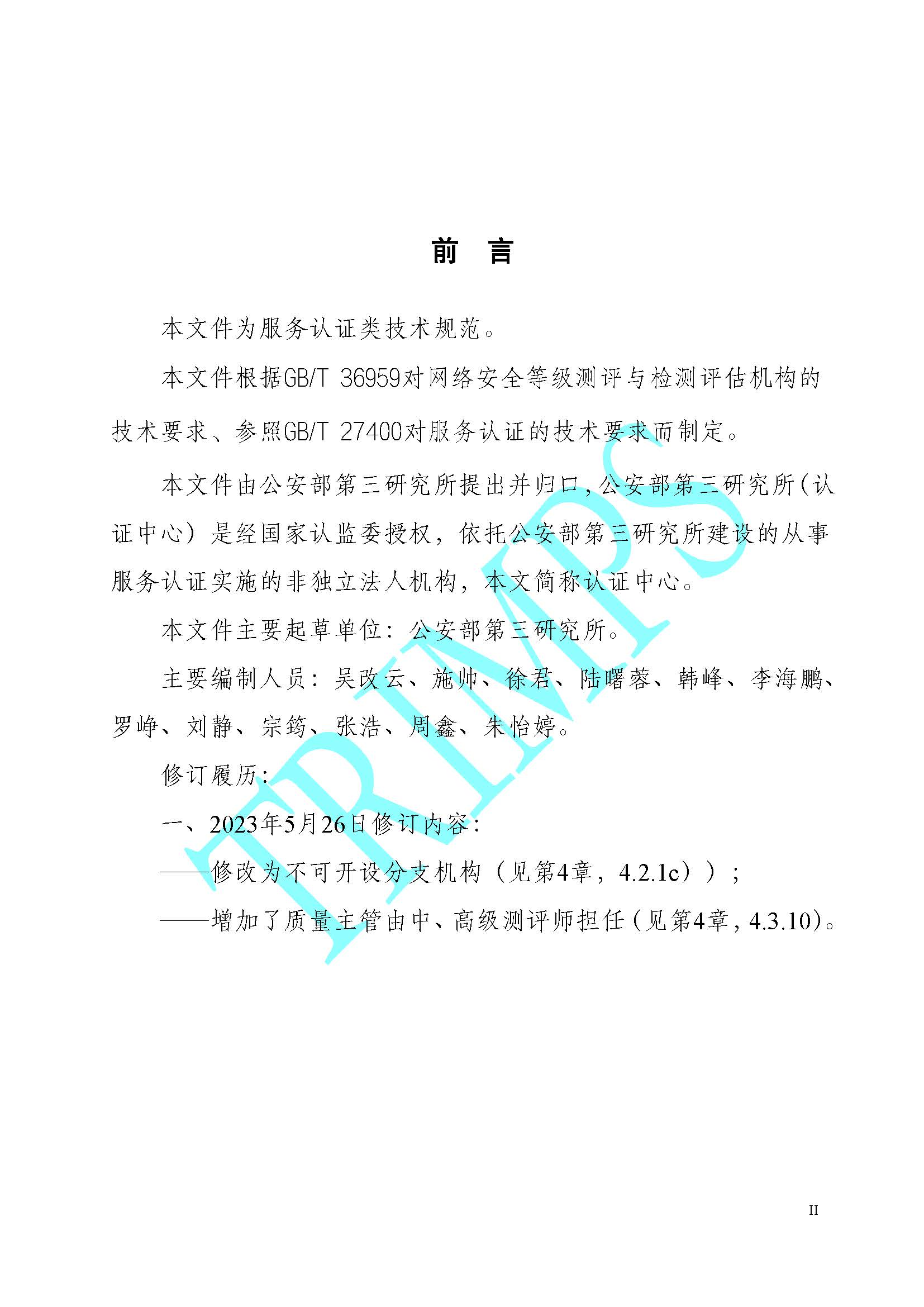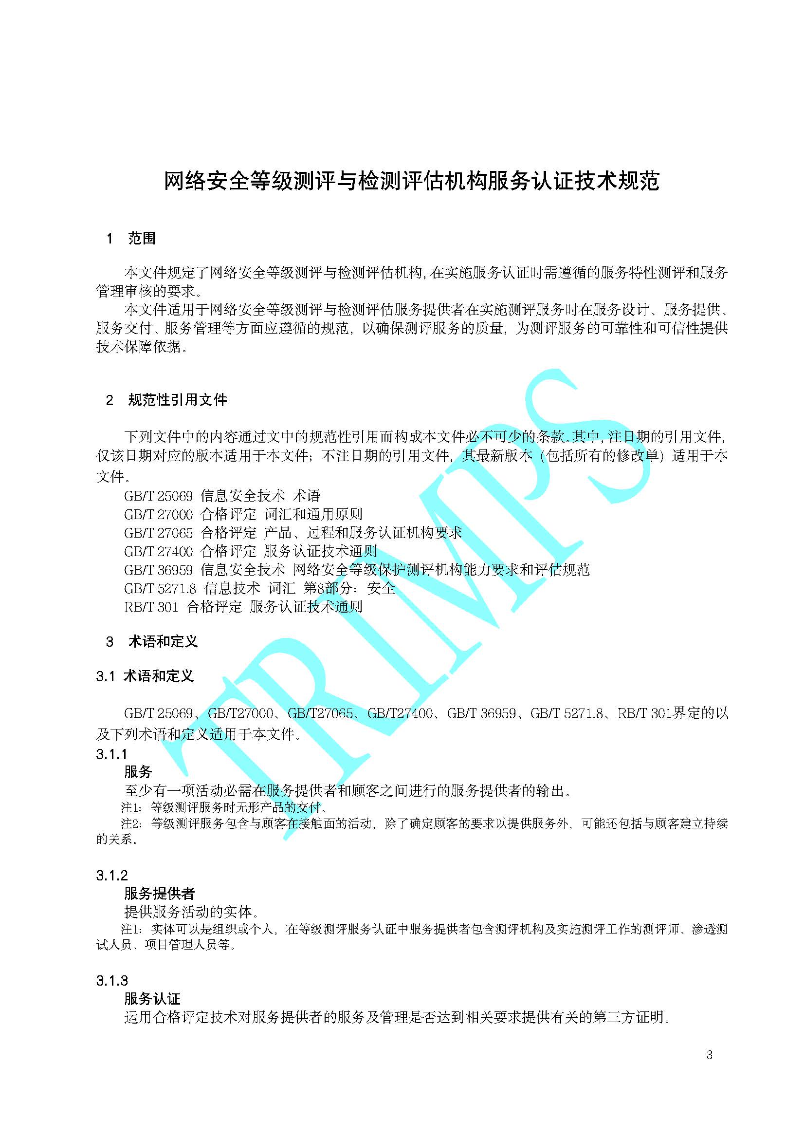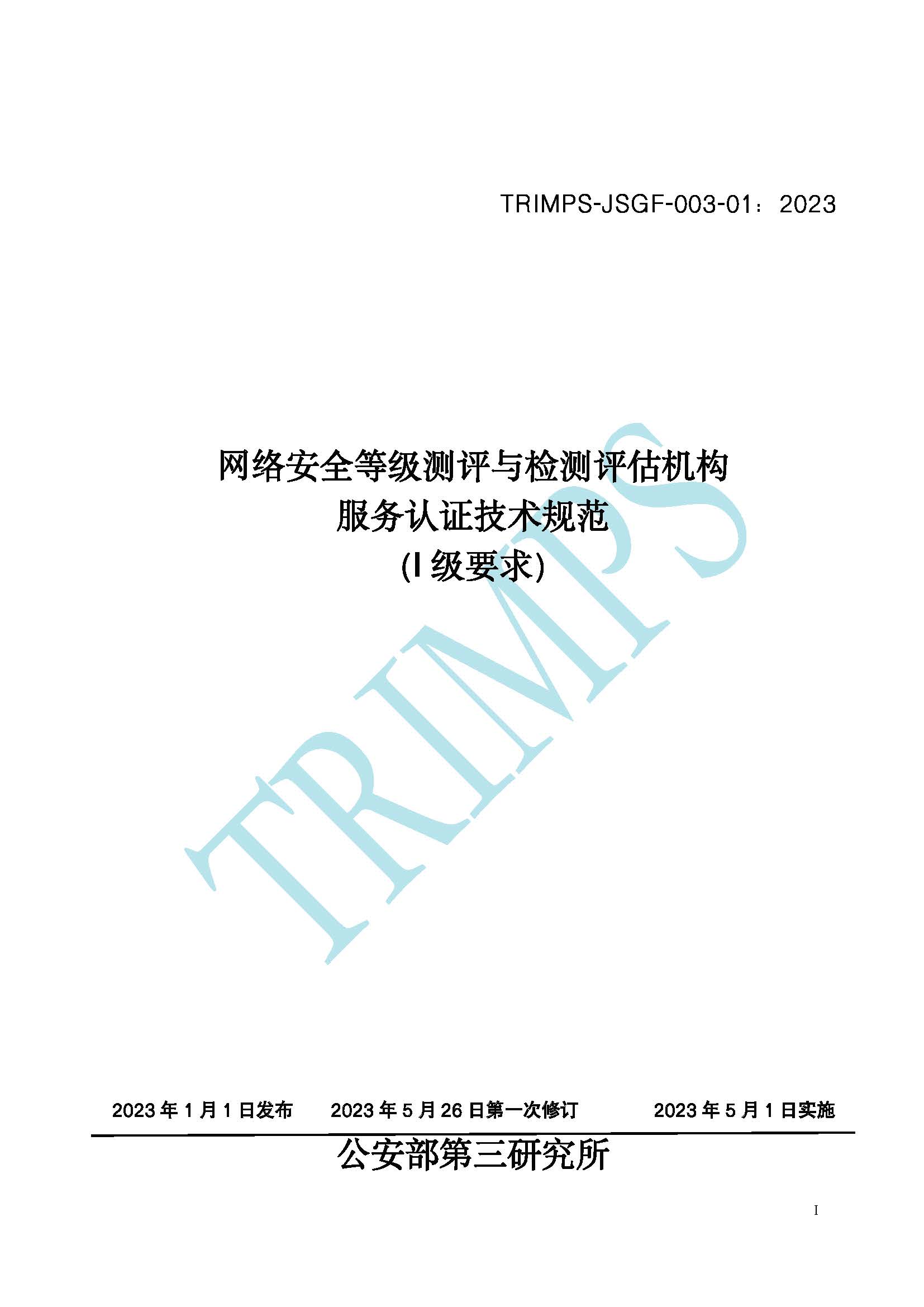 《網絡安全等級測評與檢測評估機構服務認證技術規范》TRIMPS-JSGF-003:2023