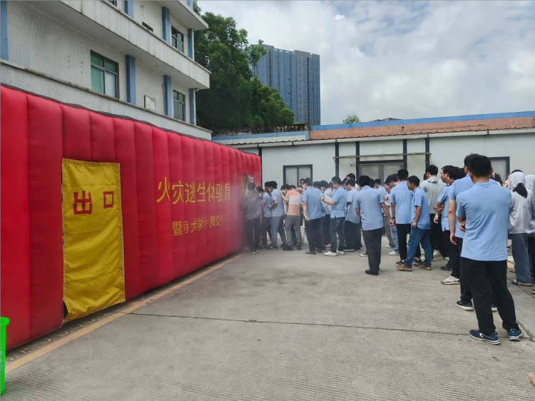 培訓現場氣氛熱烈,員工們認真聽講、積極互動,尤其在逃生帳篷模擬體驗中,大家有序進入濃煙環境,親身體驗火場逃生技巧,進一步強化了應急反應能力。